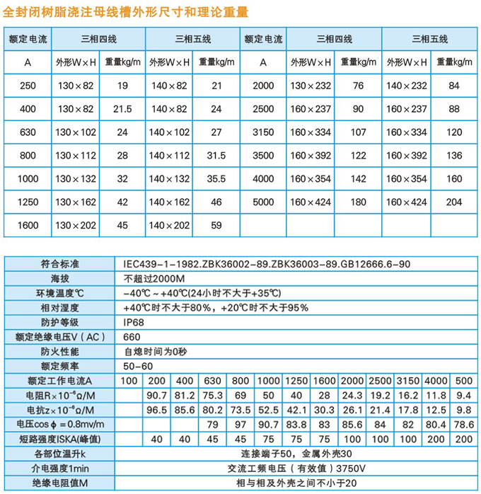 全封(feng)閉樹(shu)脂澆(jiao)注防(fang)水母線槽(cao)是無金屬(shu)外(wai)殼母線槽(cao),防(fang)水母線槽(cao)采(cai)用(yong)特殊(shu)配方的(de)(de)(de)復合(he)(he)樹(shu)脂和定量特選的(de)(de)(de)混合(he)(he)材(cai)料相混合(he)(he)制(zhi)成(cheng)高性能的(de)(de)(de)絕(jue)緣(yuan)材(cai)料,將銅母線直接澆(jiao)注密封(feng)。不(bu)(bu)(bu)存在空(kong)氣間隙,無煙囪效應,母線毛(mao)刺或(huo)過載不(bu)(bu)(bu)會引起短路(lu)(lu)。絕(jue)緣(yuan)材(cai)料不(bu)(bu)(bu)含鹵素,阻(zu)燃不(bu)(bu)(bu)會釋放出有(you)毒氣體。外(wai)殼防(fang)護等級IP68,不(bu)(bu)(bu)僅耐(nai)(nai)水、耐(nai)(nai)火(huo)(huo)、耐(nai)(nai)腐。全天候產品(pin),可(ke)(ke)長期(qi)在零下(xia)40°C的(de)(de)(de)環(huan)境(jing)工(gong)作(zuo),絕(jue)緣(yuan)樹(shu)脂不(bu)(bu)(bu)開裂。無金屬(shu)外(wai)殼,抗(kang)各種化(hua)學品(pin)腐蝕,在有(you)迷流的(de)(de)(de)環(huan)境(jing)中(zhong)工(gong)作(zuo),不(bu)(bu)(bu)會發生外(wai)殼電(dian)腐蝕的(de)(de)(de)現象。優良(liang)的(de)(de)(de)耐(nai)(nai)水性能,可(ke)(ke)長期(qi)水中(zhong)工(gong)作(zuo),可(ke)(ke)在電(dian)纜溝內使用(yong),也可(ke)(ke)埋地敷設。A級耐(nai)(nai)火(huo)(huo)性,可(ke)(ke)在950-1000°C的(de)(de)(de)火(huo)(huo)焰(yan)中(zhong)工(gong)作(zuo)90min以上,保持(chi)線路(lu)(lu)不(bu)(bu)(bu)中(zhong)斷。