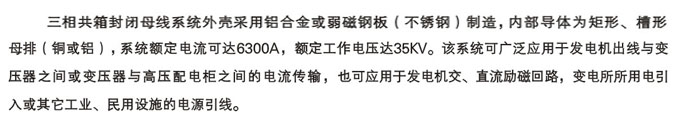 3.母線導體選用****高強度打爬距(ju)絕緣子支(zhi)撐,使(shi)系統(tong)具(ju)有較高的抗(kang)短路(lu)電(dian)動性能(neng),合理的絕緣子支(zhi)撐間(jian)距(ju)的設置,充分避免了系統(tong)共震的危險(xian),全連續外殼并多點接地(di)方式杜絕了人身觸(chu)電(dian)危險(xian)。