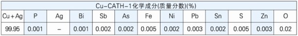 Cu-CATH-1導電銅合金材料的化學成分執行標準為GB/T5231-2001: