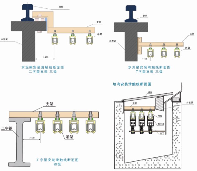 1、集電器(更(geng)多集電(dian)器(qi)請參閱“H型滑觸(chu)線(xian)集電(dian)器(qi)”章節(jie))